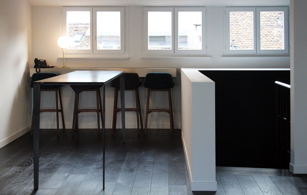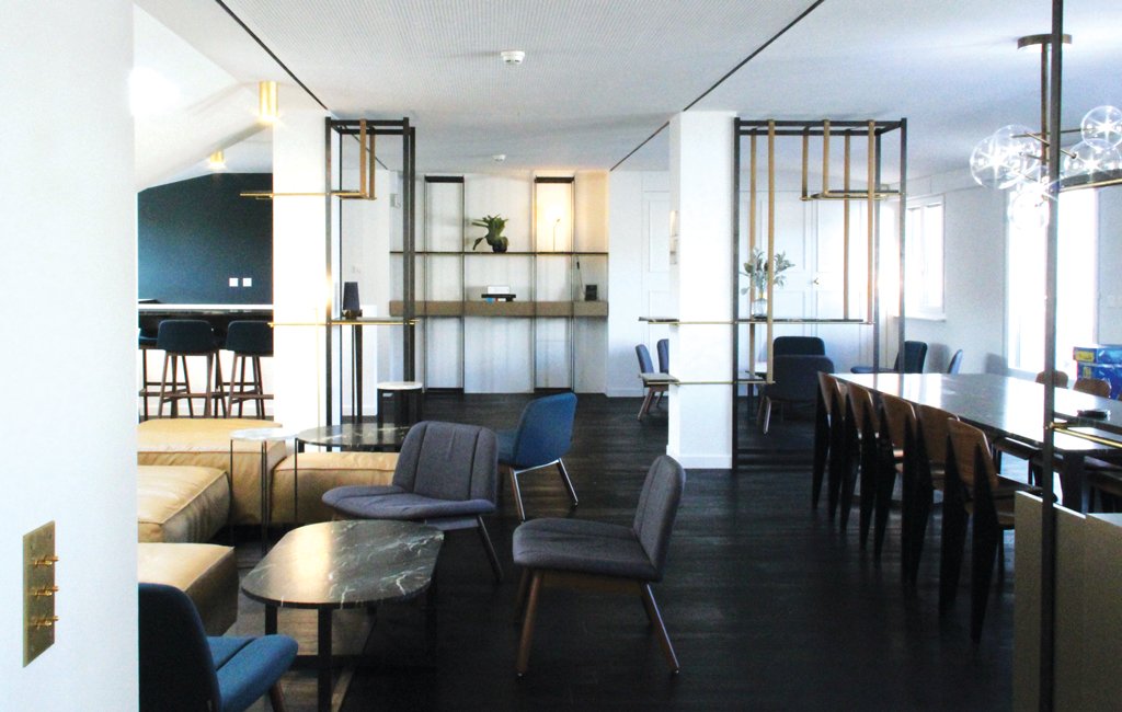 Au même titre que le reste du bâtiment, ce lieu se veut « cosy et chic ». Sa volumétrie simple et la taille modeste des espaces mènent à découvrir la terrasse urbaine, permettant le rapport de plain-pied avec l’extérieur, situé en pleine Vieille Ville. Ainsi, le grand espace est rhabillé sur mesure, par les détails de haute couture conçus par MHA et exécutés par des artisans : une retraite élégante, à l’image de la renommée du bâtiment.